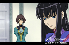 ■人革連の決意 2度に渡ってソレスタイルビーイングにセイロン島の紛争に介入され、多数の戦死者を出した人革連は、ソレスタルビーイングに対し、対決していく姿勢を全世界に向けて表明する。 これを聞いていたプトレマイオスのクルーたちは「私たちのしたことで、人革連は軍備を増強するのでは…」と心配するが、ティエリアは「彼らがそうするというのなら、我々は武力介入を続けていくだけです」と冷静に言い放つ。 人革連 統合司令部では対ガンダム部隊を新設し、エクシアと交戦したセルゲイに部隊をあずける。 さらに、対ガンダムの切り札として超人機関技術研究所出身のソーマ・ピーリスを投入する。 |