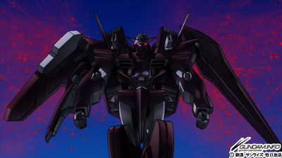 ■刹那VSサーシェス! 単機で脱出に成功したエクシアだったが、サーシェスの乗るAEUのMA「アグリッサ」が現れ、戦闘に入る。 アグリッサのプラズマフィールドにより、苦しめられる刹那。刹那が死期を悟ったその瞬間、謎のMSが現れる! |