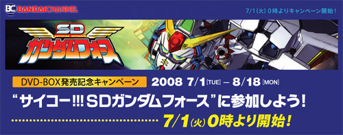 「SDガンダムフォース」DVD-BOXの発売を記念して、バンダイチャンネルの特設ページで「サイコー!!!SDガンダムフォース」キャンペーンが開催されるぞ!