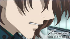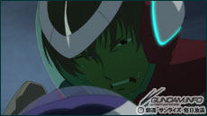 刹那の光る瞳 アニューを撃った刹那の行動には、オーライザーのパイロットだった沙慈も疑問を感じていた――アニューを説得する余地はなかったのか?――と。だが、あの時のアニューはもはや以前の彼女ではなかったと、刹那は確信を持った様子で沙慈に語る。沙慈はこうした刹那の言動に、以前の刹那とは別人のような感覚を受ける。さらに、暗闇の中で不自然に光り輝く刹那の瞳を見て、沙慈は戸惑いを隠せなかった。 |