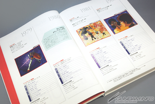 こちらは1979年から2009年の30年間を、その年の重大ニュースや流行などのトピックス、コラムを交えながら綴る年表「ガンダムヒストリー」。