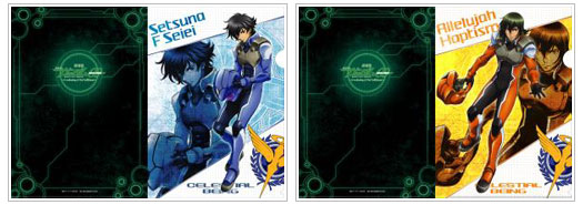 特製ネックホルダーが付属する劇場販売前売券に続き、今回アニメイトから発売される前売券には、ガンダムマイスターが描かれたA4サイズのクリアファイル2枚組が付属。