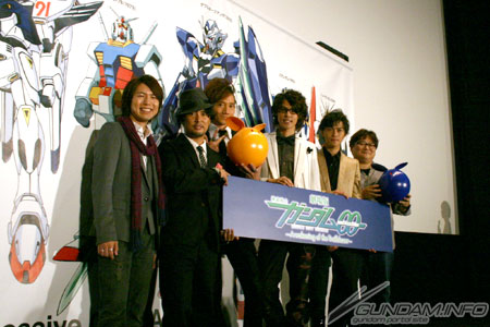初日を迎えたこの日は、都内劇場にて舞台挨拶が行われ、水島精二監督とガンダムマイスターの声優を務める宮野真守氏、三木眞一郎氏、吉野裕行氏、神谷浩史氏、そして劇場版の新キャラクター「デカルト・シャーマン」の声を担当する俳優の勝地 涼氏が登壇。