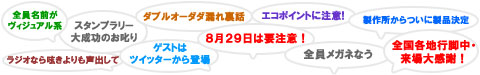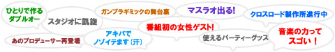 | 今週のモバイルラジオは? モバイル版では、「ふつおた収穫祭」を放送。意外とよく当たる!?マイスターの姓名判断の結果や、まさかの「あの人」からのサプライズメールなどをご紹介! 公開録音ステージの写真付きレポートも掲載しているので、是非チェックしてくださいね。 |
