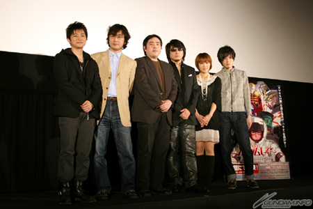 舞台挨拶には、本作の主人公であるバナージ・リンクス役の内山昂輝氏、オードリー・バーン役の藤村歩さん、ダグザ・マックール役の東地宏樹氏、タクヤ・イレイ役の下野紘氏ら出演声優陣に加え、ストーリー担当の福井晴敏氏、古橋一浩監督が登壇。下野氏による司会進行のもと、各人より本作の見所や意気込みが語られた。