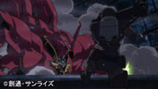 バナージとユニコーンガンダムを奪還すべく特殊部隊エコーズを率いる連邦軍のダグザ中佐は、ネェル・アーガマとの連携によるパラオ攻略戦を敢行。その混乱に乗じて脱出するバナージだが、「NT-D」の発動によって開示される「ラプラスの箱」への道標を探るため出撃したマリーダのクシャトリヤが立ち塞がる。