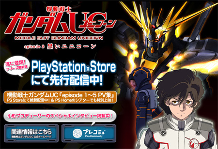 現在PlayStation®Storeでは、『機動戦士ガンダムUC episode 5「黒いユニコーン」』の先行配信が実施されている。価格はHD版が1,000円(税込)、SD版が700円(税込)。