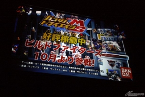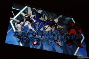 続いて、「ガンダムビルドファイターズ」に関連するガンプラのPV上映が行われ、主役機「ビルドストライクガンダム」や、「ザクアメイジング」、「ガンダムX魔王」など様々な機体のガンプラが発売されることも明らかにされた。