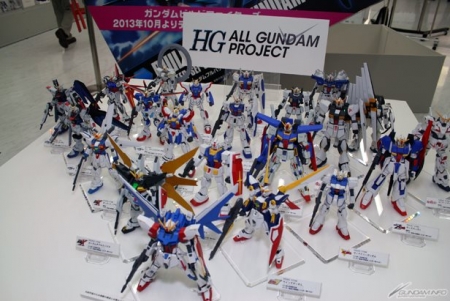 ▲「HG ALL GUNDAM PROJECT」として、歴代のガンダムシリーズの機体が並ぶ。