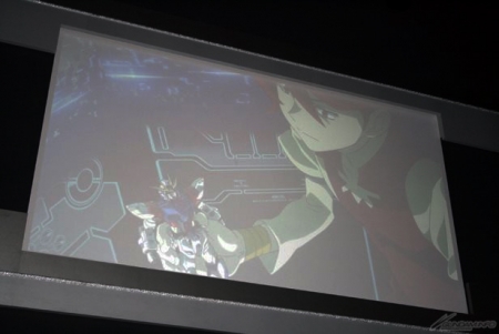 株式会社サンライズ 取締役副社長 宮河恭夫氏が登壇し、まずは初公開となる「ガンダムビルドファイターズ」のPVが上映された。