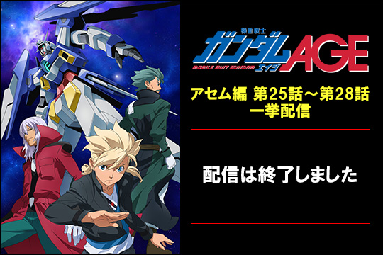 アセムとゼハートのストーリーを中心に新作カットを加えて再構成した「機動戦士ガンダムAGE ~MEMORY OF EDEN~」のBlu-ray・DVDが7月26日(金)に発売されることを記念して、現在バンダイチャンネル「みんなでストリーム」にて平日に1話ずつ配信されている、TVシリーズ「アセム編」(第25話~第28話)を、 「みんなでストリーム」および「ガンダムインフォ」にて7月20日(土)19:00よりまとめてライブ配信!