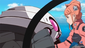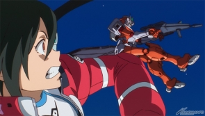 一方、キャピタル・タワーから来た未確認機を発見したアイーダは迎撃しようとするが、その機体はベルリの母が乗った大気圏グライダーだった。