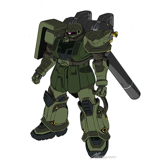 型式番号 MS-06。モビルスーツの代名詞とも呼ばれるザクII、いわゆる量産型ザクは、一年戦争末期のサンダーボルト宙域の攻防でも活躍したジオン公国軍の主力機である。