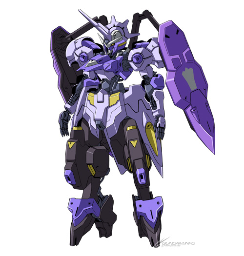 仮面を外したガエリオ・ボードウィンと共に、偽装用の外装を取り外し、本来の姿となったボードウィン家所蔵のモビルスーツ。主力武器は射撃武器内蔵の大型ランスと刀。