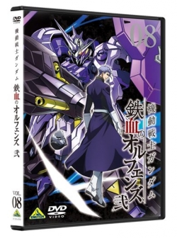第8巻には、第46話「誰が為」、第47話「生け贄」、第48話「約束」の3話を収録。音声特典には三日月・オーガス役の河西健吾さん、オルガ・イツカ役の細谷佳正さん、小川正和プロデューサーらによる第48話スタッフ&キャストオーディオコメンタリーが収録されている。さらに、Blu-rayにはガンダム初となる、スタッフとキャストによるイラストやコメントがたくさん詰まった「鉄血のオルフェンズ お疲れ様本」が付属。