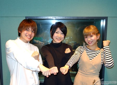 左から、内田雄馬(コウサカ・ユウマ役)、冨樫かずみ(カミキ・セカイ役)、牧野由依(ホシノ・フミナ役)
