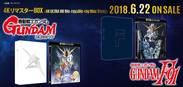 バンダイナムコアーツより『機動戦士ガンダム 逆襲のシャア』と『機動戦士ガンダムF91』の4Kリマスターボックスが、本日6月22日(金)に発売される。価格はいずれも9,200円(税抜)。