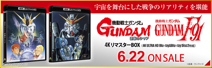 バンダイナムコアーツの4K ULTRA HD Blu-rayサイトが更新され、本日6月22日(金)に発売された『機動戦士ガンダム 逆襲のシャア』と『機動戦士ガンダムF91』の紹介に加え、4K ULTRA HD Blu-rayについての解説が公開された。