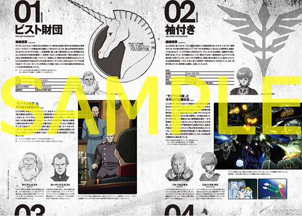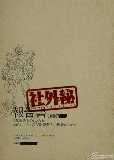 『機動戦士ガンダムUC』に登場する“マーサ・ビスト・カーバイン”らに聞き取り調査を行い、ルオ商会がまとめた極秘の報告資料は、「UC計画」にまつわるモビルスーツや関連勢力の現状をまとめた貴重なレポート資料となっている。