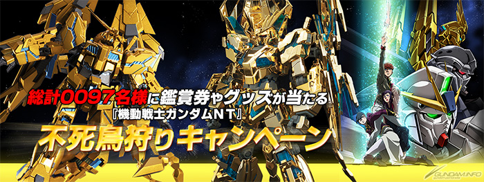 本日よりスタートした『機動戦士ガンダムNT』不死鳥狩りキャンペーンは、応募期間中に特設サイトから申し込むと鑑賞券やグッズなどの豪華景品が、抽選で総計97名に当たるというもの。