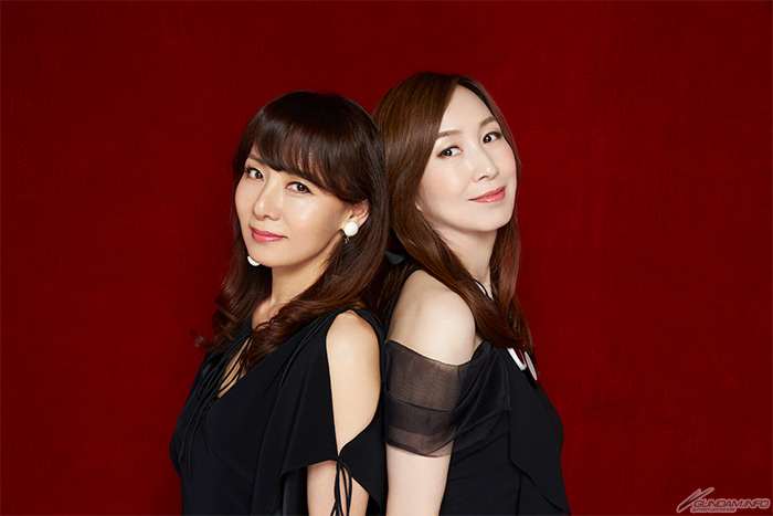 アーティスト写真は、“赤い彗星”シャア・アズナブルをイメージした「深紅のベルベット」をバックに、森口さん・鮎川さんがシャアとアムロの二律背反する宿命を思わせるかのような構図で立つ、印象的な一枚になっている。
