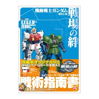 アーケードゲーム「機動戦士ガンダム 戦場の絆」トッププレイヤーへの取材をもとに、モビルスーツはカテゴリー別に高度なテクニックを掲載し、敵モビルスーツを撃破するコツをわかりやすく解説。各ステージのデータは、チームで戦術的に戦うための情報を数多く掲載。さらに特典として、「RX-79(G) 陸戦型ガンダム(ジムカラー)」と、「MS-06A 第一次量産型ザク」が使用可能になるキャンペーンコードが封入されている。