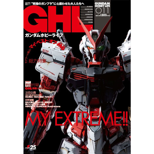 特集は「モデラーが選ぶMyBest MG」。NAOKI氏のアストレイレッドフレームを表紙に、MAX渡辺氏のグフVer.2.0、鳥山とりを氏のドムなど、腕利きモデラー思い出MGが並ぶ。特別企画として、川口名人、MAX渡辺氏、NAOKI氏3名による、MG座談会も収録。思い出のMGや、驚きだったギミックなどについて語られている。付録はGHL特製デカールとなっており、特集で紹介された機体の名称がデカールになって付属する。