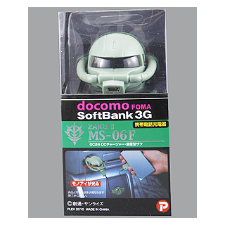量産型ザクのデザインの携帯電話充電器が登場。車のシガーソケット電源から充電を行える「docomo-FOMA」「SoftBank-3G」に対応するW-CDMA方式専用の充電器となっている。
