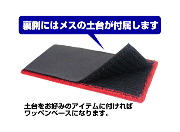 - ※メスのマジックテープの付いたワッペンベース(土台)が付属します。 ワッペンベースはお手持ちのアイテムに縫い付けて使用してください。