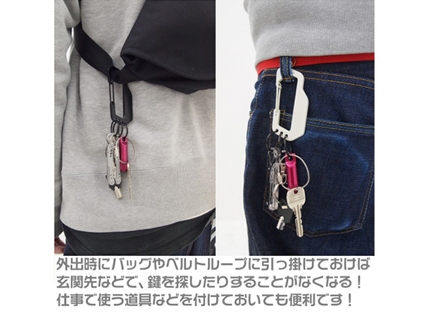 ロンドベルのロゴが入った、コスパオリジナル形状のアルミ製カラビナ。毎日使うカギ類や小物、ミニツール、ストラップなど、色々なモノが取り付けられ、実用性バツグン&ファッションのアクセントとしても活躍する。