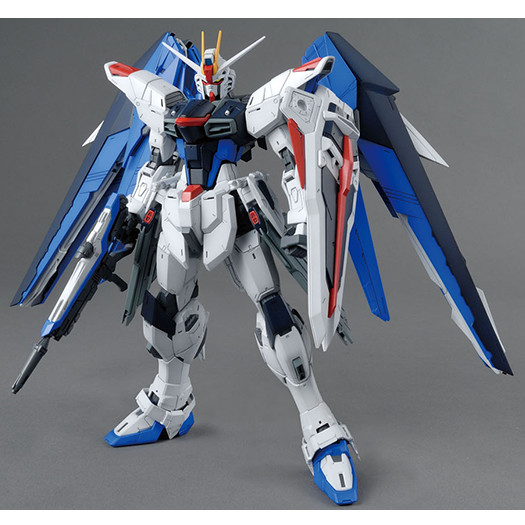 『機動戦士ガンダムSEED』より、「フリーダムガンダム」が究極の進化を遂げたMG Ver.2.0となって登場。フレーム、外装ともに完全新規造形でプロポーションを一新。随所にSEED Ver.RM系を踏襲したディテールが盛り込まれている。肘関節部分で伸縮可動する腕や、スライド機構を備えた太腿装甲、柔軟に可動する腰部など、ヒロイックなポージングが再現可能。ウイング部やビーム砲なども可動し、フルバーストモードをとることもできる。連結可能なビームサーベルなど各種武器に加え、台座、ハンドパーツといった多彩なオプションも付属。