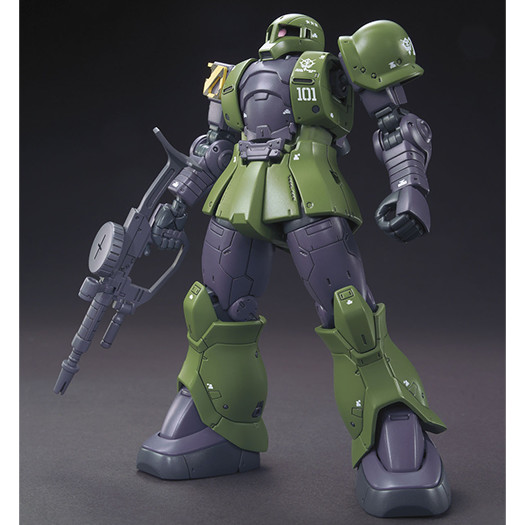『機動戦士ガンダム THE ORIGIN』のルウム戦役シーンに登場した「ザクI」が、デニム機、スレンダー機のコンパチキット化。2種類の肩パーツとマーキングのテトロンシールにより、2機を選択再現可能。対艦ライフル、バズーカ、マシンガンと武装も豊富で、ヒート・ホークは収納状態も用意されている。バックパックや腰部の側面、背面に各種武装をマウント可能。