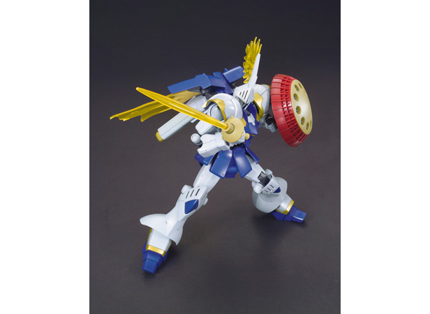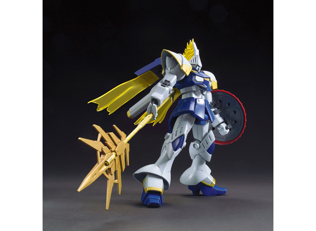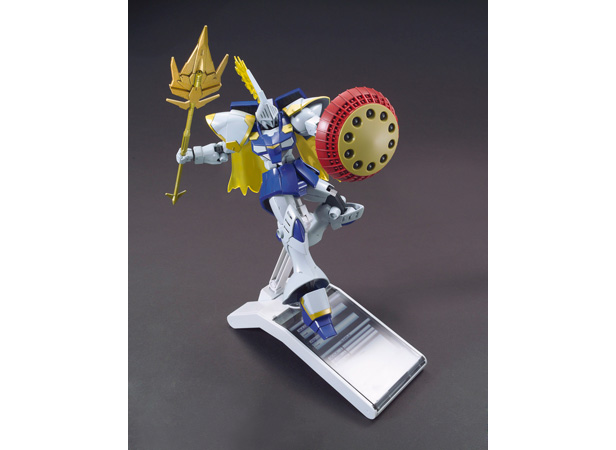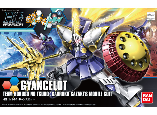 『ガンダムビルドファイターズトライ アイランド・ウォーズ』より、ギャンの系譜の新ガンプラ「ギャンスロット」が登場。頭部羽根飾りおよび背面のビームマントはクリアパーツにより劇中の質感を再現。開閉選択式の大型ランスは、ジオン公国の紋章を思わせる造形となっている。成形色で色分けされたシールドのほか、左右の武器持ち手、手首が稼働する右握り手も付属。