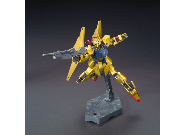 HGUCシリーズNo.200のメモリアルアイテムとして、『機動戦士Ζガンダム』より待望の「百式」が“新生‐REVIVE‐”。特徴的なゴールドの装甲がメタリック成形色で再現され、最新フォーマットの可動域によりアクションポーズも高次元に決まる。カメラアイはホイルシールにより3パターンを再現可能。ビーム・ライフルに加え、バックパックに懸架可能なクレイ・バズーカ、腰背部に脱着可能なビーム・サーベルも付属。