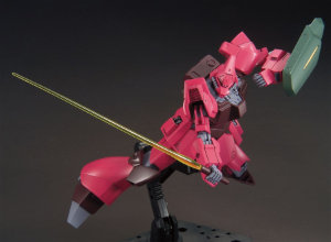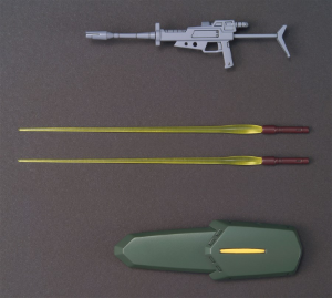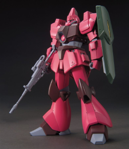 最新フォーマットに合わせ各部ディテールが高密度化され、胴体肩部には内部フレームを思わせるディテールを追加。胸部下面のモールドは別パーツでディテールを再現。二の腕に回転軸が追加されアクション性が向上。ゲルググと同型のライフルが新規造形で付属するほか、シールドは差替えで伸縮ギミックを再現。
