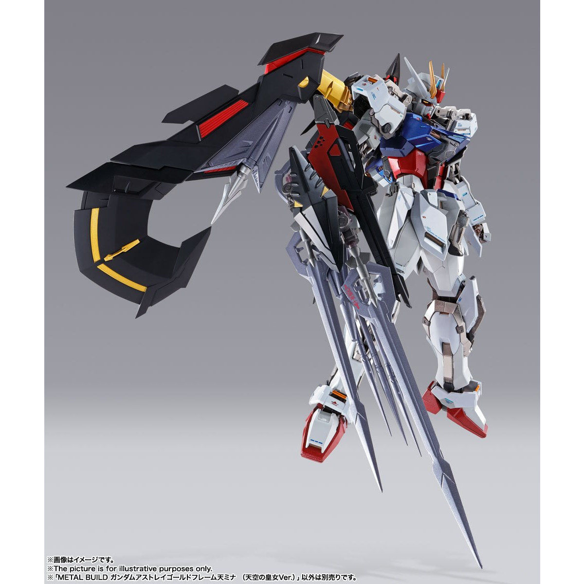 人気の高い「天ミナ」が、シリーズ最新作「天空の皇女」での姿で登場。特徴的な漆黒の装甲を、高級感のあるマットカラーで表現。史上初再現となる「天ミナC」への換装に加え、デザイナー阿久津潤一氏による数々の新規武装を装備。クリアエフェクトの追加等、さらにプレイバリューを増した仕様となっております。さらにMSV企画「オルタナティブストライク」にも対応し、対応機体へのストライカーパック等の装着も可能になっております。