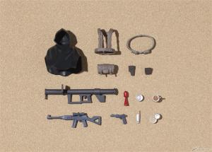 「地球連邦軍一般兵士01」は彩色済み完成品で全高約10cm(約1/18スケール)、標準体型の男性兵士です。オプションパーツとして制式拳銃、制式ライフル、ホルスター等の基本セットに、その他付属品、差し替え用手首も多数付属します。
