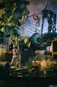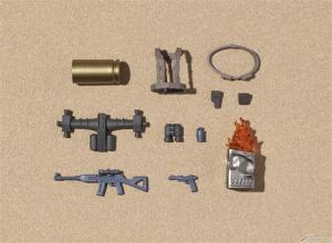 03のボーナスパーツは「ザク・マシンガンの薬莢・一斗缶の焚火」が付属。地球連邦軍01〜03の3体を購入すると兵士たちのひと時の休息が再現できます。