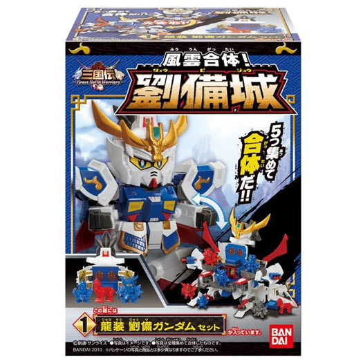 大人気のTVアニメ『SDガンダム三国伝BraveBattleWarriors』の合体ハウス商品です。全5種を集めることで全高約195mmの巨大な「龍装劉備ガンダム」が完成!
