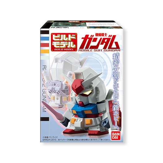 細かく分かれた消しゴム製パーツを上下左右から組み合わせて完成させるコレクションフィギュアシリーズ「ビルドモデル ガンダム」の第3弾。