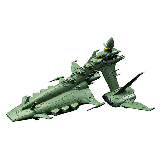 ルウム戦役でジオン艦隊の旗艦として活躍した“ワルキューレ”を全長約190mmの艦体でリアルに再現。通常のムサイ級より大型化された2連装メガ粒子砲は砲塔の旋回を可能とし、艦首の小型艇“コムサイ”は着脱が可能となっている。また同スケールのMS(ザク)が4機付属し、コムサイの内部にMS1機の収納状態も再現できる。