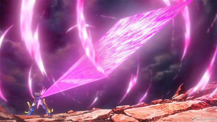 が49ポイント弱の支持を集めた。胸のライオンの口から飛び出した剣の持ち手を地面につき刺すと、地球の力を利用して刃を形成し、紫色に発光する巨大な剣を手にした。この超咆剣を3回振る斬撃を決めたミナト。辛くも攻撃を抑えたカミキ・セカイとホシノ・フミナであったが、機体は行動不能となってしまう。その後のコウサカ・ユウマとの決戦では、プラフスキーパワーゲートで増幅されハイ・バースト化したハイビームライフルを、超咆剣で真正面から受けてたったのだ。これ以上ないくらい増幅されたビームを剣1本で受け止めた結果、壮絶な爆発が起こった場面は印象的だった。