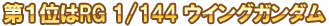 が25ポイント弱の支持を集めた。「新機動戦記ガンダムW Endless Waltz 敗者たちの栄光」のEW版ウイングガンダムは2016年に発売されているが、今回はテレビ版の第1話から登場し、視聴者が最初に目にしたウイングガンダムである。待望のウイングガンダムが漸く製品化ということで、注目度が上がったようだ。