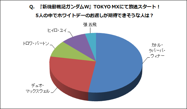 Q.『新機動戦記ガンダムW』TOKYO MXにて放送スタート!5人の中でホワイトデーのお返しが期待できそうな人は?