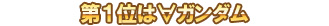 が36ポイントの支持を集めた。「∀」とは数学の全称記号で「すべてを内包する」という意味を持っている。「∀ガンダム」は、背中から蝶のように広がる無数の“ナノマシン”を放出する、ものすごい最終兵器「月光蝶」を装備していた。その“ナノマシン”のあらゆる人工物を砂状に分解する機能により、地球上の文明が「∀ガンダム」たった1機に過去の遺物にされてしまったのである。「月光蝶」の威力……凄すぎる。しかし、終盤まではその最終兵器は使われず、ビームサーベルやビームライフル、ハンマーなどの通常の兵器で戦闘していた。それでもパワー、スピードで他のモビルスーツを圧倒していて、宇宙船を押し返したり、戦艦の浮上を押し戻したりしており、その能力の高さからも人気が高いようである。
