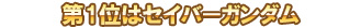 が31ポイント強の支持を集めた。部隊指揮官を超える称号「FAITH」を与えられたアスランに、デュランダル議長から直々に与えられた機体である。このセイバーガンダムのポイントは航空機形態への変形である。左右に大きく展開された大きな翼は、Ζガンダムのウェイブライダー形態に近い。高機動戦闘に特化した機体であり、一撃離脱戦法を得意とする。この機体はキラのフリーダムにバラバラに切られてしまったのが、強く印象に残っている。