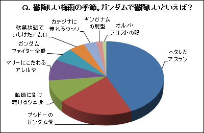 「Q.鬱陶しい梅雨の季節。ガンダムで鬱陶しいといえば?」はヘタレたアスランが1位!【2009年6月29日~2009年7月5日】