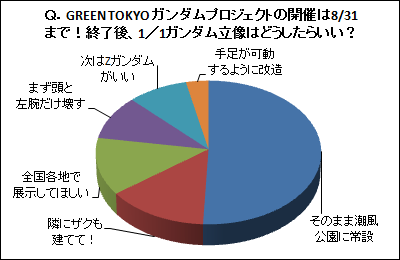 「Q.GREEN TOKYO ガンダムプロジェクトの開催は8/31まで!終了後、1/1ガンダム立像はどうしたらいい?」はそのまま潮風公園に常設が1位!【2009年8月17日~2009年8月23日】
