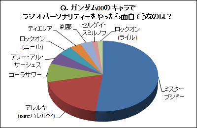 「Q.WEBラジオ「ソレスタルステーション00R」好評配信中!ガンダム00のキャラでラジオパーソナリティーをやったら面白そうなのは?」はミスターブシドーが1位!【2009年9月21日~2009年9月27日】