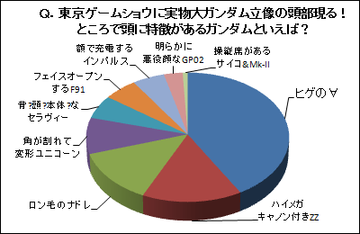 「Q.東京ゲームショウに実物大ガンダム立像の頭部現る!ところで頭に特徴があるガンダムといえば?」はヒゲの∀が1位!【2009年9月28日~2009年10月4日】